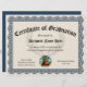 Add your company or school logo! Certificate of Graduation, Letter size 8.5"x11" Certificate of Graduation to award kindergarten, fifth 5th grade, eighth 8th grade, or senior 12th grade for completion of school and course requirements. Special award for students for any course, school or program. Custom design in elegant blue and tan. Show your appreciation for the the efforts of your students with this customisable, personalised award certificate. Elegant rosette vintage woodcut artistic border with traditional classic style. Add your own text online, and easily order certificates custom made for your special event, grad party or ceremony. Leave the signature area blank to add a signature later, or type your name and title, and still add your signature above. Honoree's name can be typed in or the blank line can be left to add hand-written or printed names later.