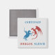 Design showing a knight fighting against a dragon and the words: Certified Dragon Slayer.
