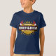 The t-shirt feels and looks great quality, a good thick cotton. It will be a little big for my son, but that means he will be able to wear it and not out grow it too soon. The print was as described on the order when personalised. True size, shape and colour T-shirt- thanks.