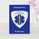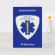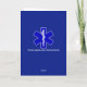 This fire engine blue card is decorated on the front with the Certified Paramedic shield. The greeting inside can be customised.