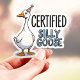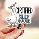 This fun sticker features a goofy goose wearing a party hat with the phrase "Certified Silly Goose." Perfect for anyone who embraces their silly side! This durable vinyl sticker is great for laptops, water bottles, phone cases, and more. Add a touch of whimsy and laughter to your belongings.