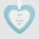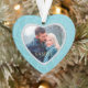 This holiday keepsake ornament features your own photograph within a pretty cerulean blue faux brocade pattern frame which has an inside sparkly lining. The other side has the same sky blue swirl border with additional text on the interior. An elegant and festive keepsake gift for newlyweds, any couple, or for any portrait photograph. To position your photo for the best appearance after it is uploaded, use "Customise", the arrow indicators, and plus or minus to size it. *Please note - the image is printed on the surface, and does not contain brocade fabric or glitter.*