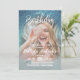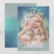 This girly, modern, and glittering photo birthday party invitation is perfect for your special day. It features a customisable photograph of the guest of honour and a faux printed cerulean blue into teal green into pale turquoise sparkly glitter ombre gradient. It's chic, elegant, pretty, unique, and cool; all the qualities your daughter will want for her party invites.