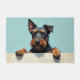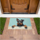 The soft dusty blue background adds a clean and soothing touch, perfect for welcoming entryways. Designed with extra space at the top and bottom, it allows easy personalisation with names, welcome messages, or custom text—making it ideal for unique dog-themed doormats and thoughtful gifts.