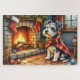 Cesky Terrier Fireplace with Christmas Lights Jigsaw Puzzle