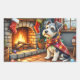 Cesky Terrier Fireplace with Christmas Lights Rectangular Sticker