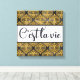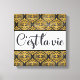 Modern script font with black and gold patterned background gives this wall art a distinctive Parisian flair