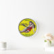 The clock did not take as long to arrive as I thought it might and was extremely well packaged. I didn't do the measurements so I didn't realize it is a little smaller than the average clock but that does not matter (just make sure you check if that's important to you).It is really nifty! It seems very solid and well made not flimsy at all. It has been going well and has kept good time in its few weeks on my wall. Nice product. Gets noticed too! Nicer in real life than the picture but true to the picture