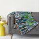 A quality printed throw has its advantages. This is a much finer weave throw than its loopier cousins, and though lighter, it is worth the investment for custom room accessorizing. The back is much prettier than the typical brown, and the fringe on the long sides very vivid, the selvage nicely done. Before photographing, I washed the throw in cold water, delicate, with a thicker woven throw the same size. On tumble dry low, this throw was dry in half the time as the other. This is a very practical quality if you use throws for furniture covers or to wrap up in frequently. The sleekness of the fabric makes it a great layer for accenting or protecting without the feeling of sitting on too much stuff. Perfect for napping or when you feel a light chill coming on. The color printing is beautiful and on this fabric, matched the design and color of my Photoshop image. This is an advantage for blending room fabrics and colors. The fringe on the short sides prints the colors from the design image and therefore varies from the side fringe. I streaked a white fractal line through the plaid pattern to give the illusion of weaving. This printed as crisp as an illusory thread, and put some white in the short side fringe, showing another advantage of print vs loomed- for artistic purposes, line lines, detail, and color integrity can be planned and preserved. My loomed throws have color limitations and more of a needlepoint texture. Print throws reproduce an exact image. The throw felt a little stiff straight out of the package, but this went away in the first delicate wash. Of course I searched the wash water for ink or bleeding and there was none.