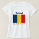 On the front of this shirt an editable title and slogan accompanies the Chadian flag with its blue, yellow and red vertical bands. The back displays a detailed map of Chad.