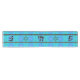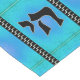 Add some flair to your dining table w/ this Table Runner featuring digital artist, Leslie Sigal Javorek's original painting emulating the look of hand-thrown clay tiles glazed w/a mottled turquoise is divided w/two Art Deco style black & silver inset borders, and completed w/ alternating Judaica symbols: The Hebrew characters pronounced "Chai" ("life" in English) & simple black w/white border Stars of David. Coordinating dishes, etc. at Jewbilee.