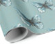 Teal butterfly with chain link fence textured overlay on teal blue background.