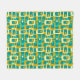 This medium fleece blanket has a mid-century modern design of rounded rectangles with ovals inside in retro colours of turquoise, teal, off-white, and gold. If you want the same design with different colours, message me.