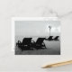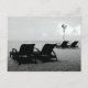 Postcard with black and white photography of deck chairs and umbrellas on the beach at Sanur in Bali.