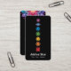 Simple design with the chakra energy points in a vertical line on the front of the card, with a colourful mandala on the back.