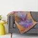 A quality printed throw has its advantages. This is a much finer weave throw than its loopier cousins, and though lighter, it is worth the investment for custom room accessorizing. The back is much prettier than the typical brown, and the fringe on the long sides very vivid, the selvage nicely done. Before photographing, I washed the throw in cold water, delicate, with a thicker woven throw the same size. On tumble dry low, this throw was dry in half the time as the other. This is a very practical quality if you use throws for furniture covers or to wrap up in frequently. The sleekness of the fabric makes it a great layer for accenting or protecting without the feeling of sitting on too much stuff. Perfect for napping or when you feel a light chill coming on. The color printing is beautiful and on this fabric, matched the design and color of my Photoshop image. This is an advantage for blending room fabrics and colors. The fringe on the short sides prints the colors from the design image and therefore varies from the side fringe. I streaked a white fractal line through the plaid pattern to give the illusion of weaving. This printed as crisp as an illusory thread, and put some white in the short side fringe, showing another advantage of print vs loomed- for artistic purposes, line lines, detail, and color integrity can be planned and preserved. My loomed throws have color limitations and more of a needlepoint texture. Print throws reproduce an exact image. The throw felt a little stiff straight out of the package, but this went away in the first delicate wash. Of course I searched the wash water for ink or bleeding and there was none.