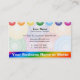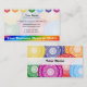 This design represents the seven main chakras, which are spiritual energy centres in the body. These include the root, sacral, solar plexus, heart, throat, third eye and crown chakra. Each is a colour of the rainbow: red, orange, yellow, green, blue, indigo and violet. This business card would be perfectly suited for an energy healer, Reiki master / teacher, yoga instructor, or anyone else in the spiritual / healing field.
