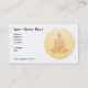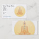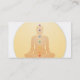 Business card showing androgynous person with rainbow chakras in meditation Lotus pose. Person is illustrated with palms of their hands up in the receptive mudra. The chakras are (Anahata, Muladhara, Swadhisthana, Manipura,Vishuddha, Ajna, Sahasrara).