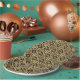 Set of eight 9” paper plates with an image of Chalcedonian black and gold circles with two griffins, mythological beasts, alternating with others that have a floral design.