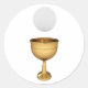This design is a chalice. The chalice is gold and has a piece of bread above it. This chalice design looks great on this Stickers