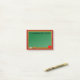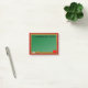 Teacher's Post it Notepad with a green chalkboard and an apple on a red plaid background. Text says: "A note from Mrs. Smith." Personalise with your own text.