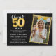 Chalkboard Black Gold Balloons 50th Birthday Photo Invitation