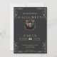 The back of the invitation continues the theme with its sleek black background, ensuring a cohesive and stylish look. Whether you're hosting a sophisticated costume ball or a whimsical pumpkin carving party, this invitation is sure to set the perfect tone for your Halloween celebration. Invite your guests to join you for a night of fun and festivities with this stunning Halloween party invitation.