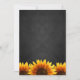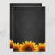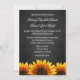 Black Chalkboard Sunflower Wedding Invitations---match the RSVP cards and more found below on this page. Compliment your sunflower wedding theme with these invitations that feature a black chalkboard texture as a background with vibrant sunflowers at the bottom of the front and back of each invitation. These wedding invitations are set to high quality basic card stock; however, you can change the stock to linen, felt (embossed), recycled, and several metallic shades if you would like under number 2 (choose your style, size & paper type) below the orange add to cart button. A list of the additional costs for a fancier card stock are displayed also under that option. Each invitation comes with a fitted white envelope. See matching wedding RSVP cards below to complete the suite.