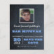 Chalkboard Blue Bar Mitzvah Photo Save the Date Announcement Postcard