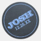 Chalkboard Blue Name Logo and Date Classic Round Sticker