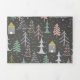 Chalkboard Christmas Trees and Houses Pink Yellow Tri-Fold Holiday Card