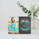 Pretty teal blue and purple floral chalkboard Class of 2015 graduation announcements. This beautiful chalk graduation announcement is easily customised for your event by simply adding your photo and details in the font style and colour, wording and layout of your choice.