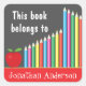 This book sticker features the customisable text: This book belongs to (students name). The background is a chalkboard accented with coloured pencils and a red apple. These stickers are perfect to add the students name to his/her books.