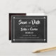 Personalise with your names and details on this cool chalkboard save the date card featuring cute cupids.