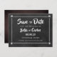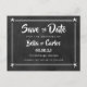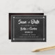 Personalise with your names and details on this cool chalkboard save the date card featuring cute cupids.