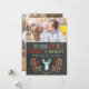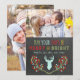 Happy Holidays christmas customisable name and photo card in rustic country chalkboard pattern with vintage floral illustration, deer with antlers, and hand lettered style text. Add your custom text to this card to create a unique christmas photo greeting this holiday season for friends and family.
