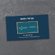 A business card for a math tutor or geometry teacher with a chalkboard in a wooden frame, and the Schrödinger equation written on it, phone and e-mail information, all on a dark blue background. Full contact details are available on the back.