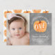 A stylishly sweet birthday invitation featuring your photo with an autumn theme and hand painted pumpkin and chalkboard background. Reads "Our Little Pumpkin is turning one"