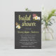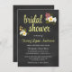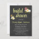 Modern Chalkboard Wedding Invitations - Floral Garden Bouquet Bridal Shower. Bright and cheerful yellow and white abstract flowers with tea rose accents. Fun and feminine casual typography in lilac script calligraphy on slate grey blackboard. Just add the name of the Bride-to-Be, the date, time and details, and personalise the bridal registry information. Perfect for rural or rustic country farm wedding themes. Click Customise It to change the size, style, or layout and create your own affordable wedding shower invitations. Some elements contained in this design are commercially licensed from CreativeMarket, copyrighted by Mia Charro, and may not be used or reproduced without permission.
