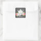 Pretty tea bridal shower favour seal featuring a vintage tea pot & tea cups & beautiful watercolor pink flowers set on a chalkboard background.