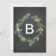 This chalkboard foliage wreath backing wedding invitation card is perfect for a rustic wedding. The design features a frame of green leaves and leafy greenery botanicals on a charcoal grey chalkboard background. The backing features a matching vintage wreath which can be personalised with the couples monogram.