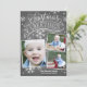 This 3-photo holiday card features hand lettered and calligraphy artwork, all on a trendy chalkboard background.