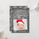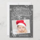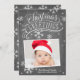 This photo holiday card features hand lettered and calligraphy artwork on a trendy chalkboard background with snowflakes.