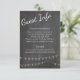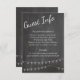 Chalkboard Guest Information card with lights. You can add all of your wedding details on this card. You can change the headings or remove a section. If you need more space on the front, you can remove the lights on the front. Or you can upload a map of the wedding site on the back. This card is great for all of your extra details like the wedding website, attire, transportation, accommodations, etc. The card matches others in the collection in my store.