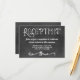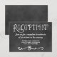 Invite guests to your celebration with this chalkboard reception card featuring bold hand-drawn lettering and an elegant decorative flourish. The dark textured background with white typography and script details creates a warm, casual feel. Customise the time, venue name, and address to seamlessly coordinate with your chalkboard wedding suite.