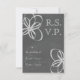 A modern wedding RSVP featuring flowers at upper left and bottom right corners over a chalkboard inspired background on front.