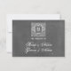 A wedding rsvp featuring a chalkboard inspired design. Personalise with the bride and groom's names on front and with the date on back.