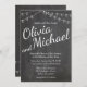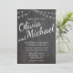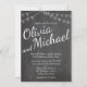 Chalkboard Invitation with String Lights for a wedding. The bride and groom's names are written in a large script font across the page. You can change the fonts, font colors, and all of the text. The invitation matches a collection in my store.