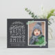 Affordable custom printed holiday photo cards with simple templates for customisation. This fun design features cute hand-lettered style typography on a faux chalkboard background with green striped washi tape around your photo. The text reads "Hope the holidays bring you lots of reasons to smile". Personalise it with your photos, family name, the year or other custom text. Reverse side has space for additional photos or text. Use the design tools to edit the text, add more photos and create a unique one of a kind holiday photo card design.