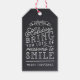 Custom printed holiday gift tags personalised with your photos and text. This fun two-sided design features cute hand-lettered style typography on a faux chalkboard background and red striped washi tape around your photo. The text reads "Hope the holidays bring you lots of reasons to smile". Personalise it with your photo, family name or other custom text. Use the design tools to edit the text fonts and colours, add more photos and create a unique one of a kind holiday gift tag.